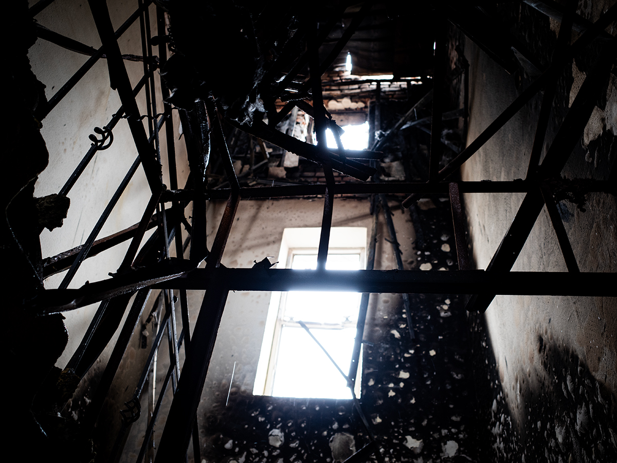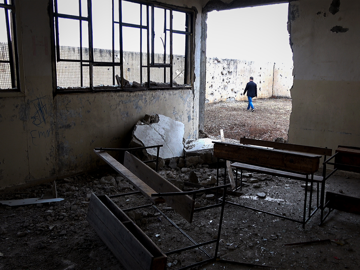 国境を接するトルコからの軍事侵攻により破壊されたシリア北東部の小学校。(佐藤慧撮影)