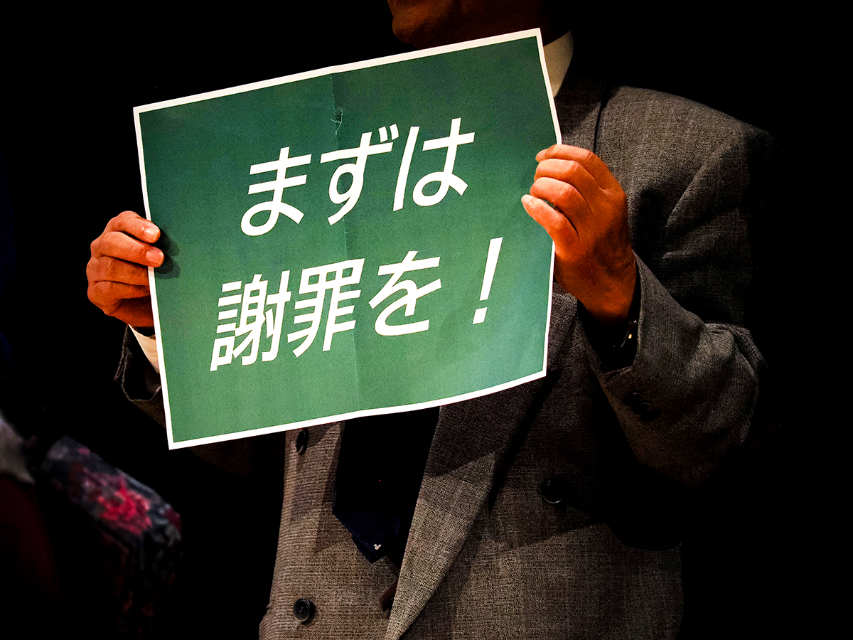 会場で掲げられたプラカード。(安田菜津紀撮影)
