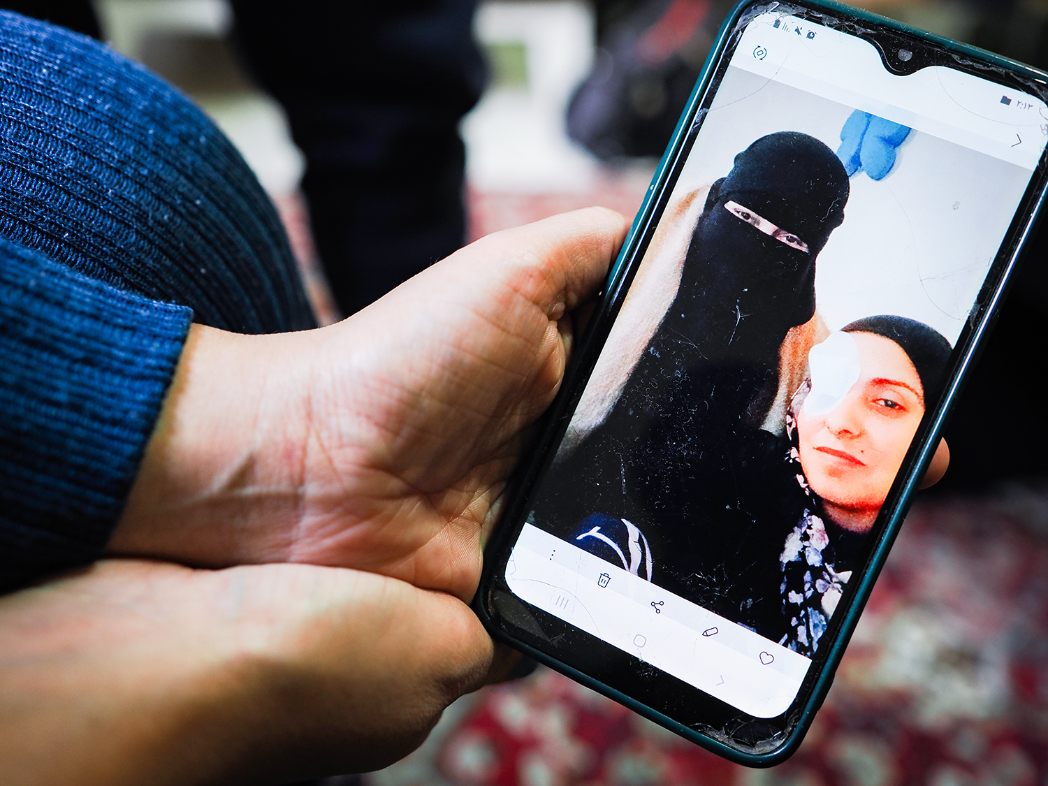ガザの自宅が爆撃を受けた際、フィダーさんは辛うじて瓦礫の下から救出されたものの、頭を強く打ち、頭蓋骨にヒビが入る重傷を負った。目の中に破片や砂、ガラスが入り込み、出血も止まらなかった。ガザ地区内の病院では、麻酔も医療物資も乏しく、刻一刻と視力が失われていく中、身ひとつで――つまり娘たちを残したまま――エジプトへ出るほかに道はなかった。