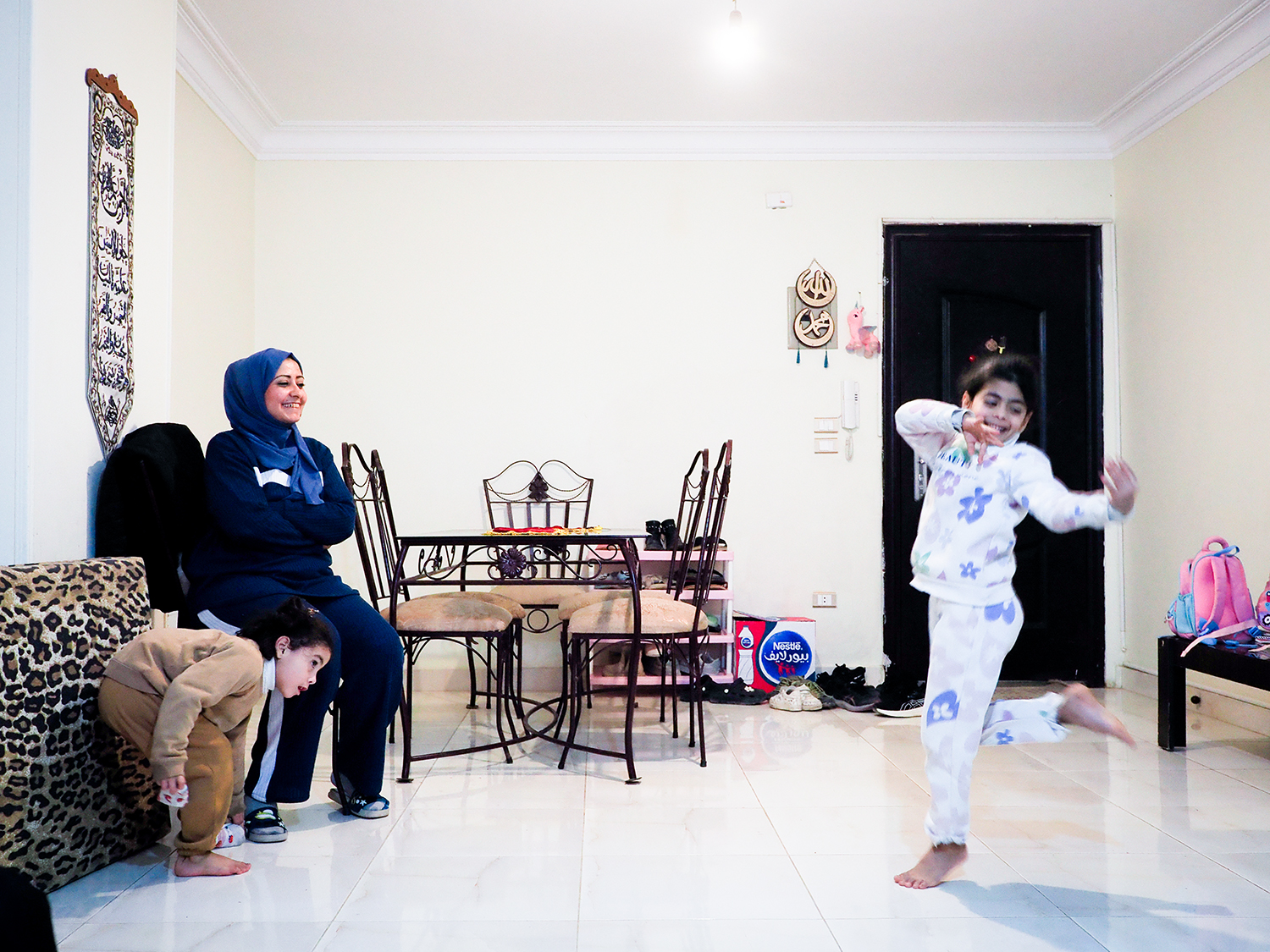 フィダー・ファドルさんは、エジプトの首都カイロ郊外、集合住宅がひしめく一角で生活している。幼い娘3人との避難生活は、困難に次ぐ困難の日々だった。