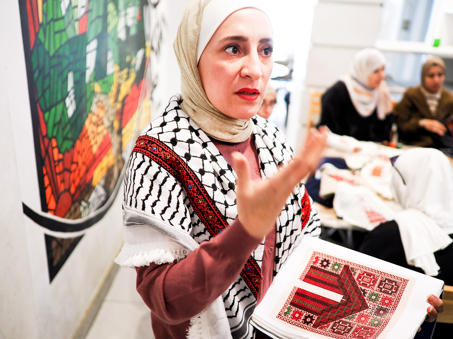 「カイロでの生活は困難の連続で、最初は自分自身の癒やしのために、子どもの頃からの趣味だったパレスチナ刺繍――タトリーズを始めました。刺繍に没頭することで現実の苦しみから離れ、心を整えることができた経験から、私は『Threads of Hope(希望の糸)』というプロジェクトを立ち上げ、同じように避難してきたガザの女性たちのコミュニティを作りました。イスラエルが私たちの伝統を奪おうとする中で、タトリーズはパレスチナの歴史や土地の物語を継承し、アイデンティティを守るための大切な手段なのです」