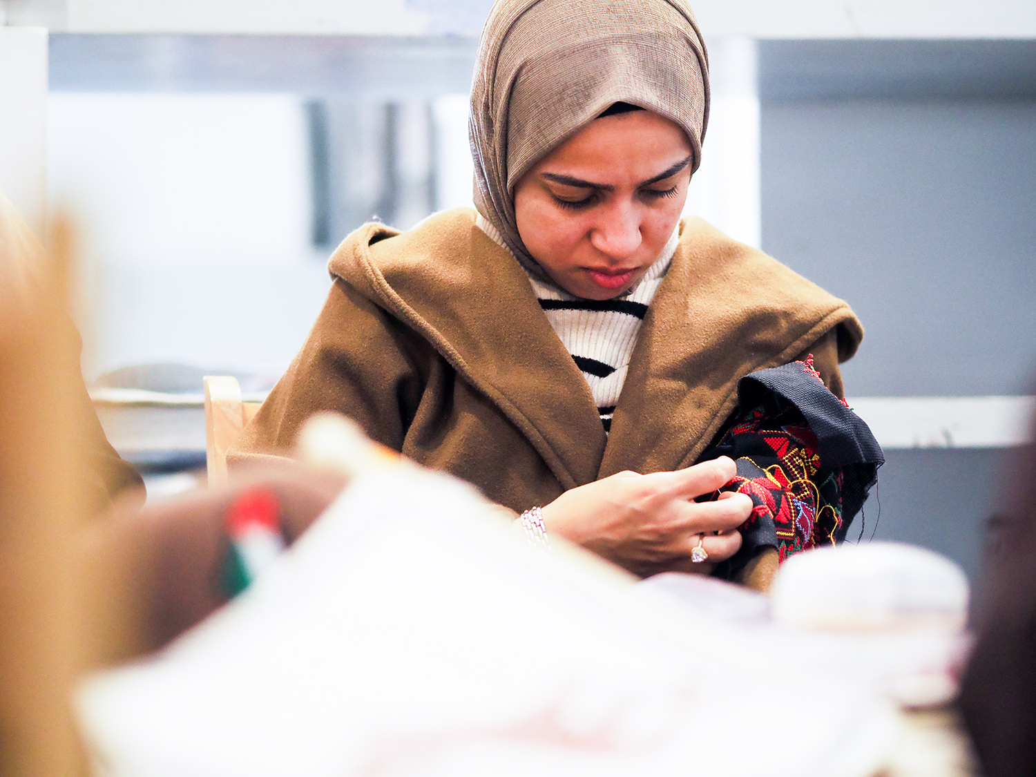 カイロ市内の雑居ビルの部屋を借り、女性たちは毎週、ここに集い、ひと針ひと針、細やかな刺繍作品を仕上げていく。