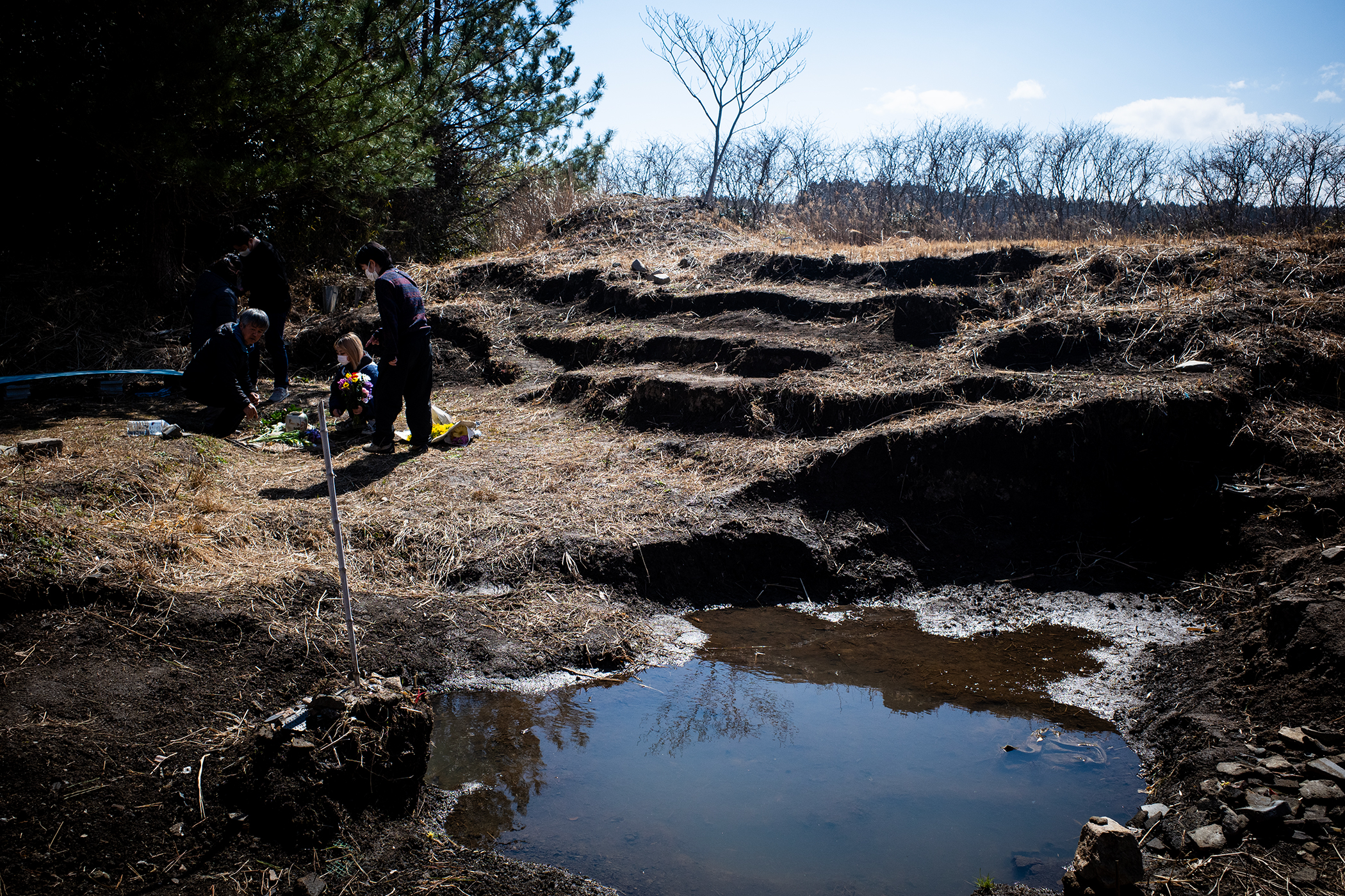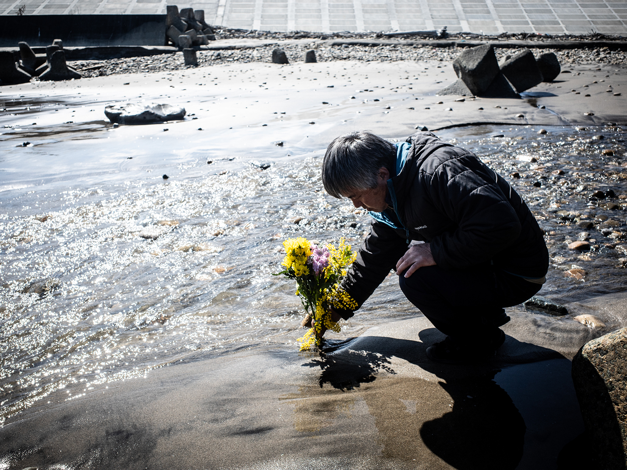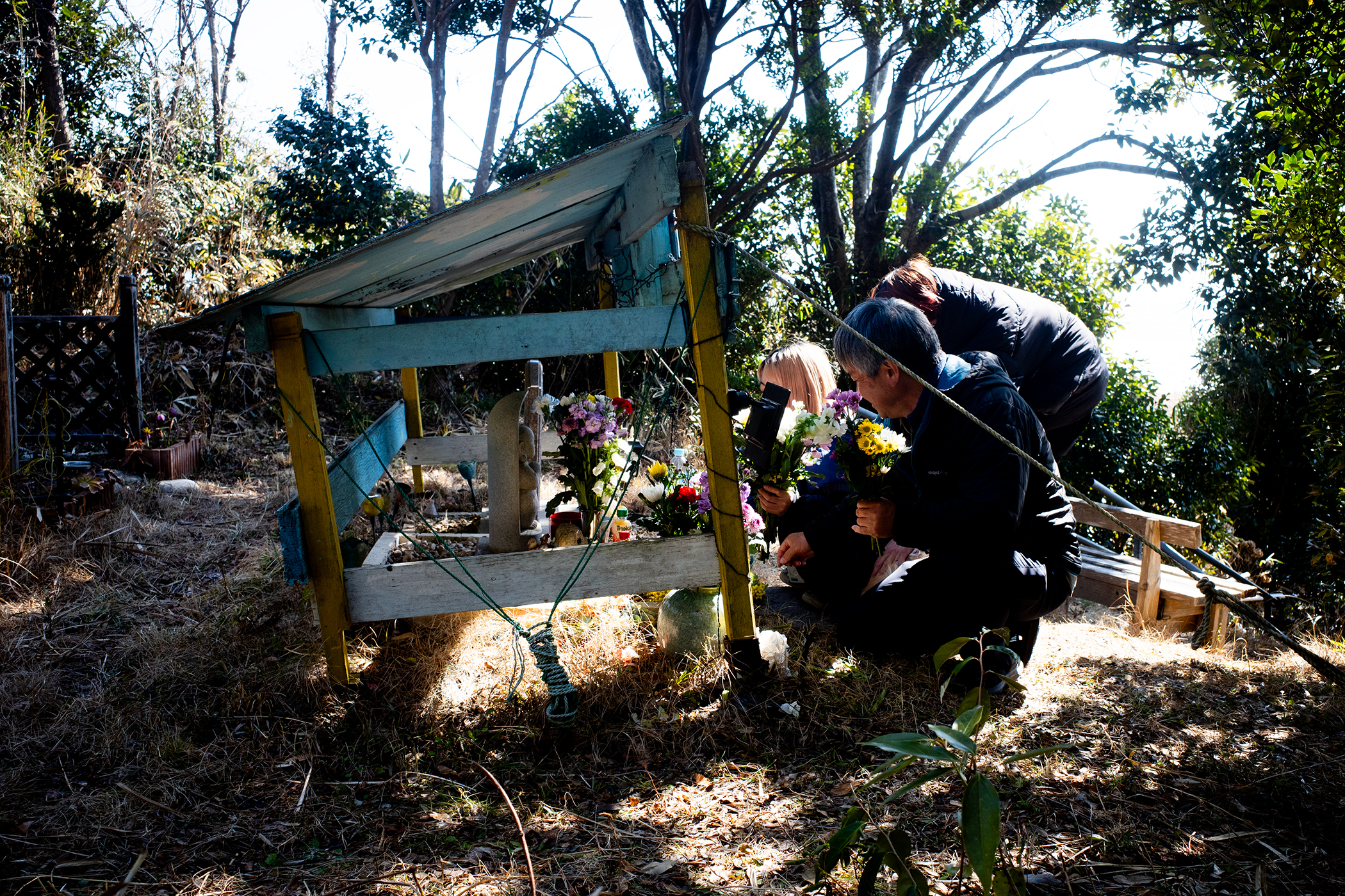 2026年3月11日、福島県大熊町の帰還困難区域内で、木村紀夫さんは各所に花を手向けてまわった。