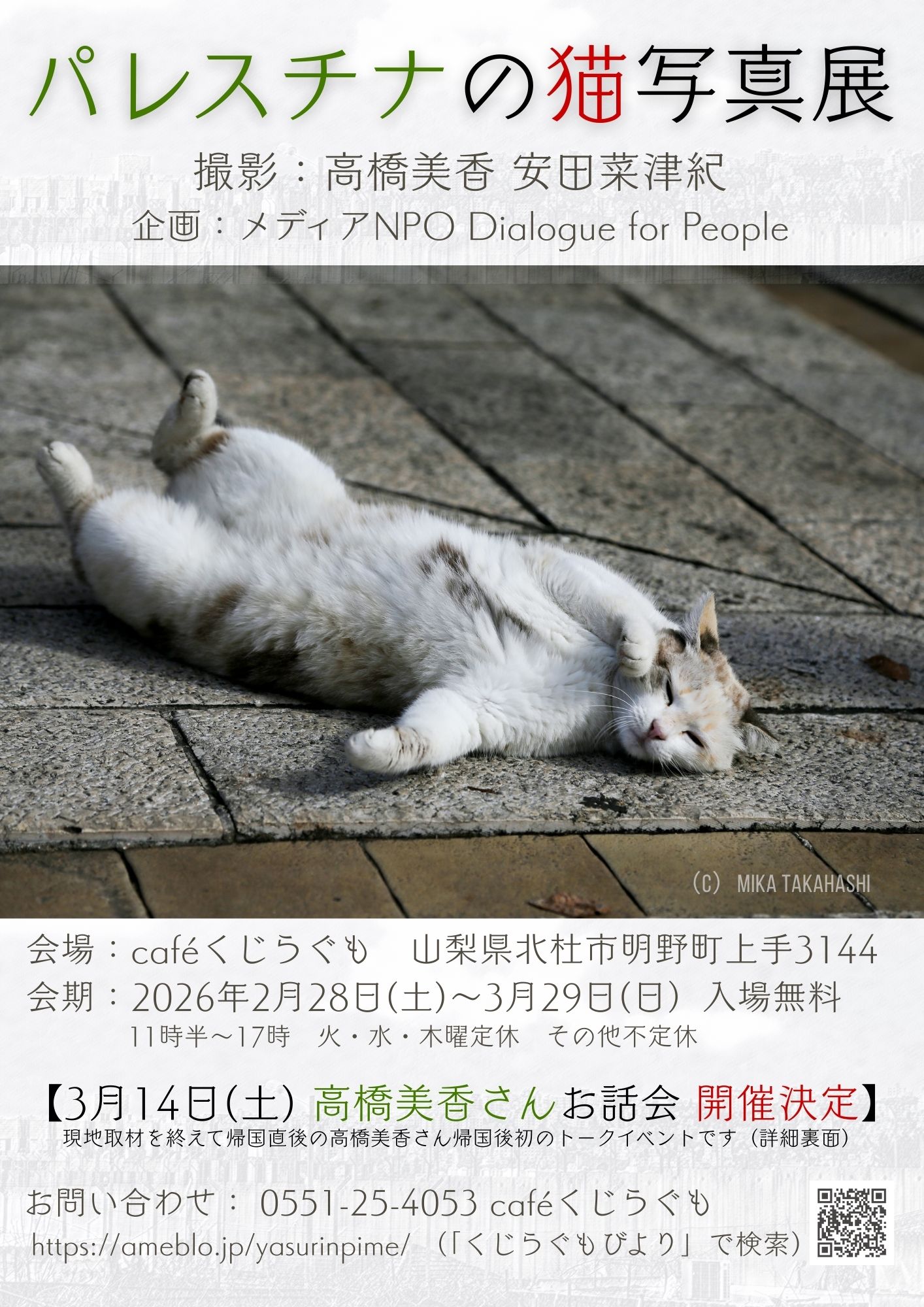 【2026年3月14日(土)15:00〜開催】「パレスチナの猫」高橋美香さんお話会