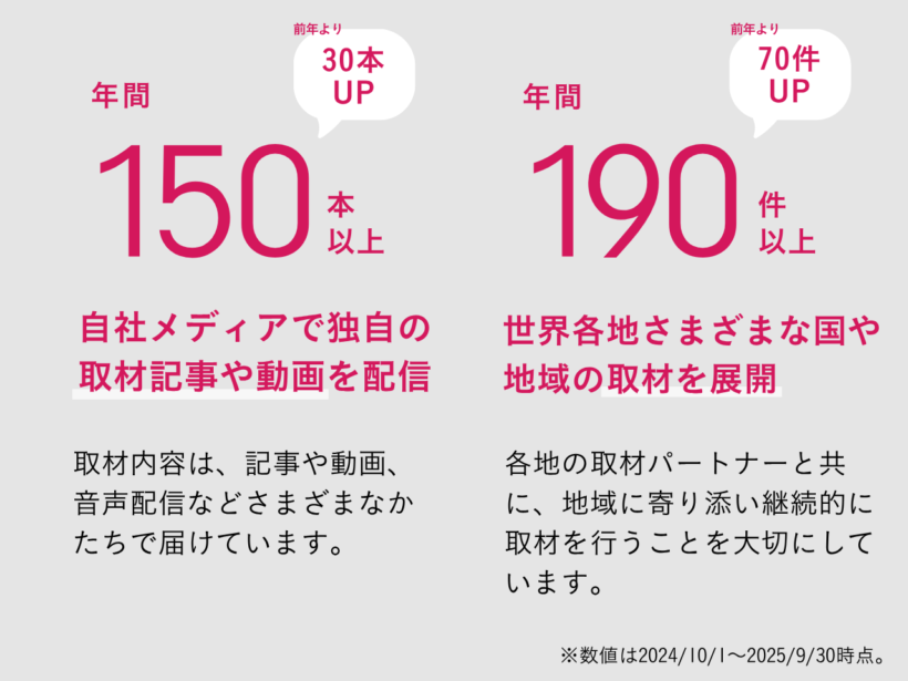 ✔ 特定の企業やスポンサーからの収入に依存せず、市民が支えるメディアNPO として活動することで、権力や大きな声におもねることなく、注目を集めることがなかなか難しい社会課題の発信を続けています。