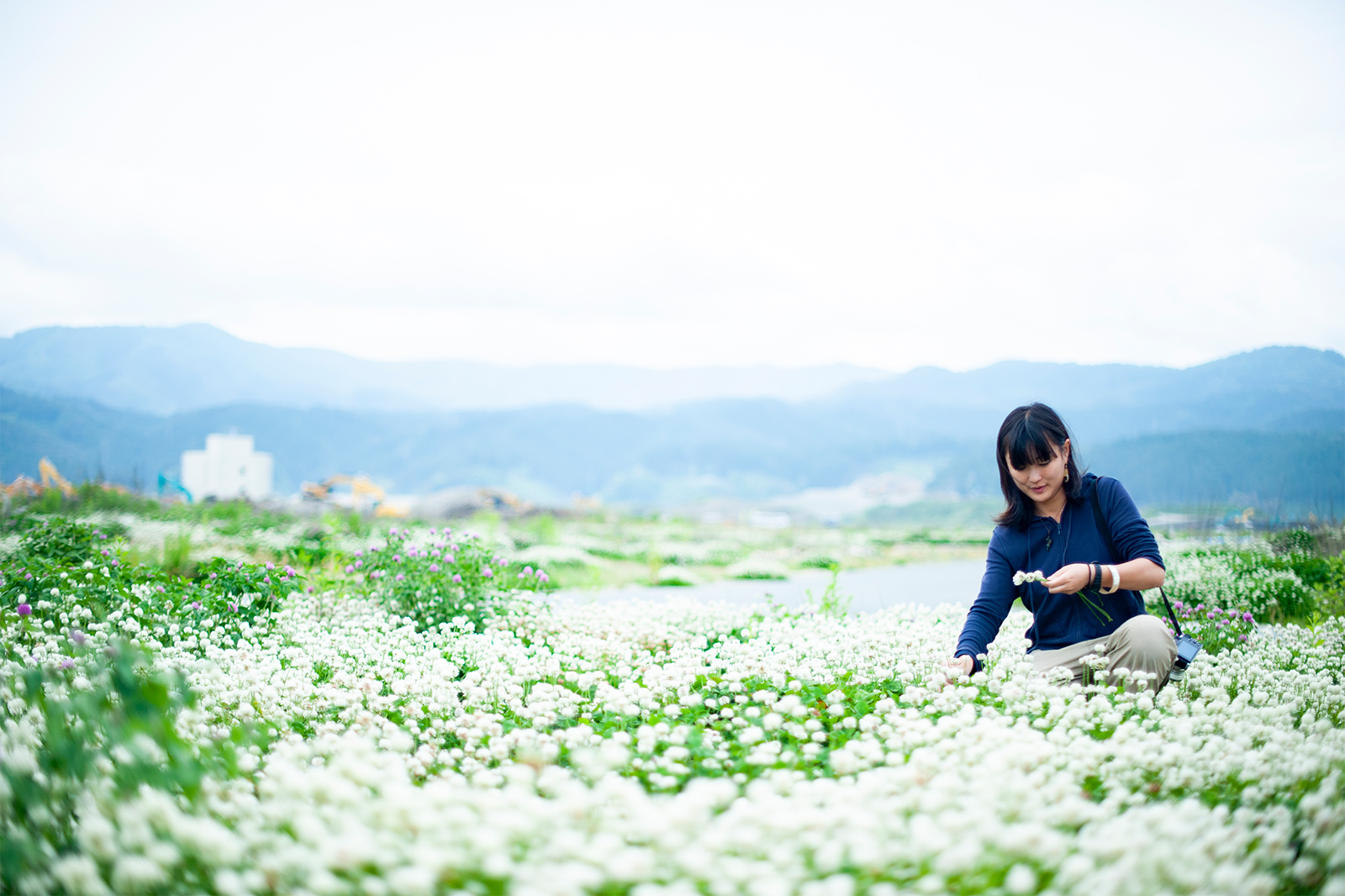 徐々に瓦礫も片づけられ、広大な街跡には色彩の乏しい茶色の大地が広がっていました。そこにある時期、緑のクローバーが少しずつ広がり始めたかと思うと、あっというまにシロツメクサの咲き誇る、真っ白な花畑が現れたのです。まるで、たくさんの命が奪われてしまった虚無の真空を、その小さな命たちが癒していくような景色に感じられました。(佐藤慧)