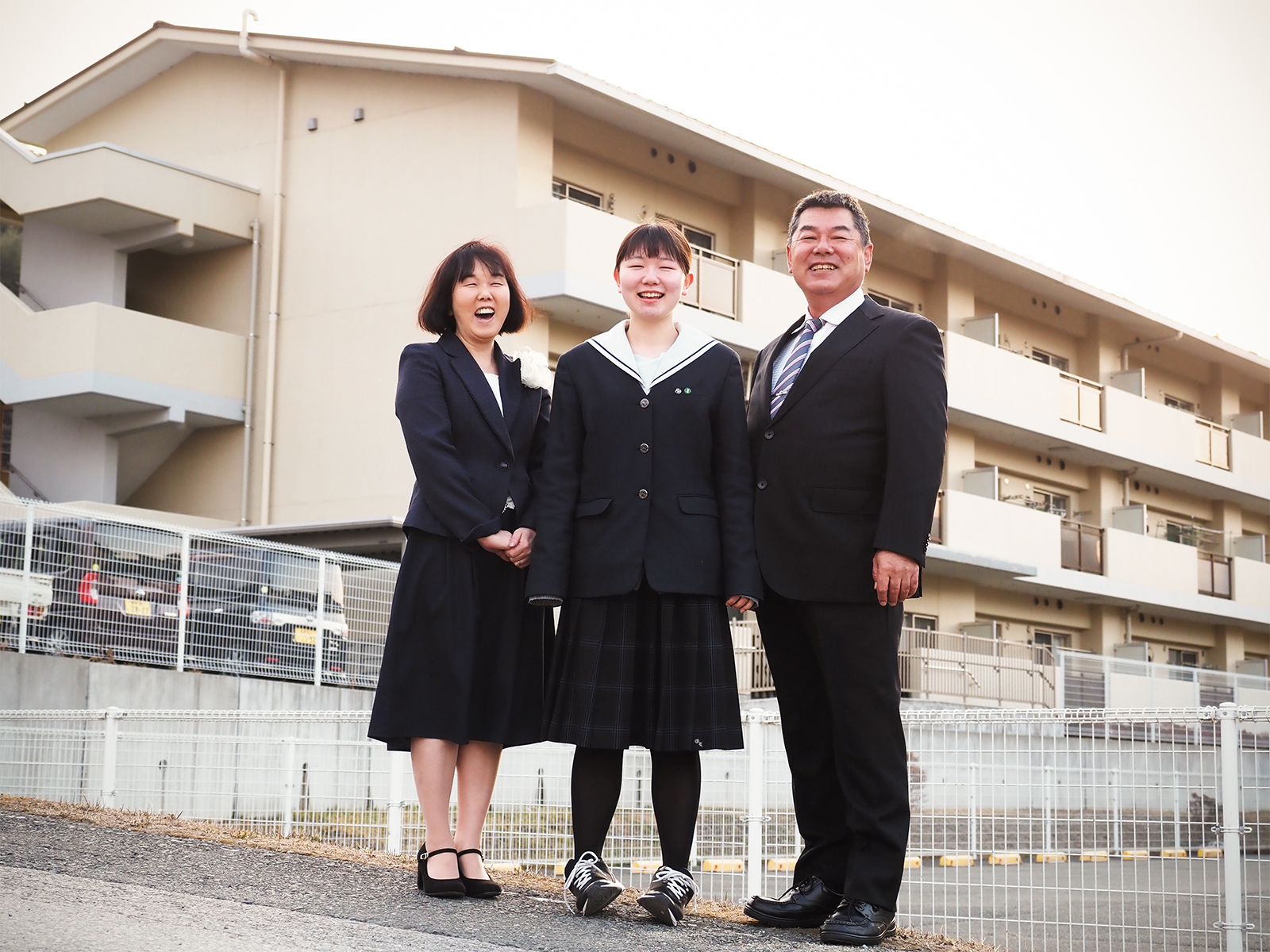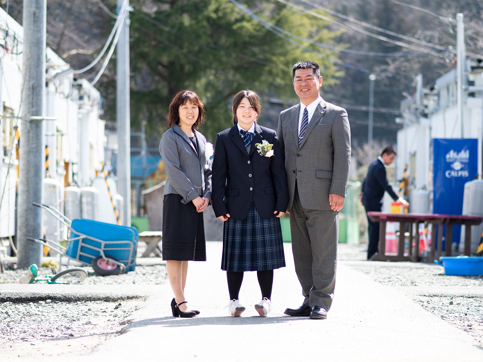 佐藤さん一家の長女あかりさんは、地震が発生したあの日、まだ小学1年生でした。震災前に過ごした時間よりも、あの日から続く“非日常”を生きてきた時間の方が長くなろうとしていた時期、あかりさんの小学校卒業の記念に撮った一枚です。今(2022年)では他の地域の人々に、震災の経験・教訓を伝える活動も行っています。(安田菜津紀)