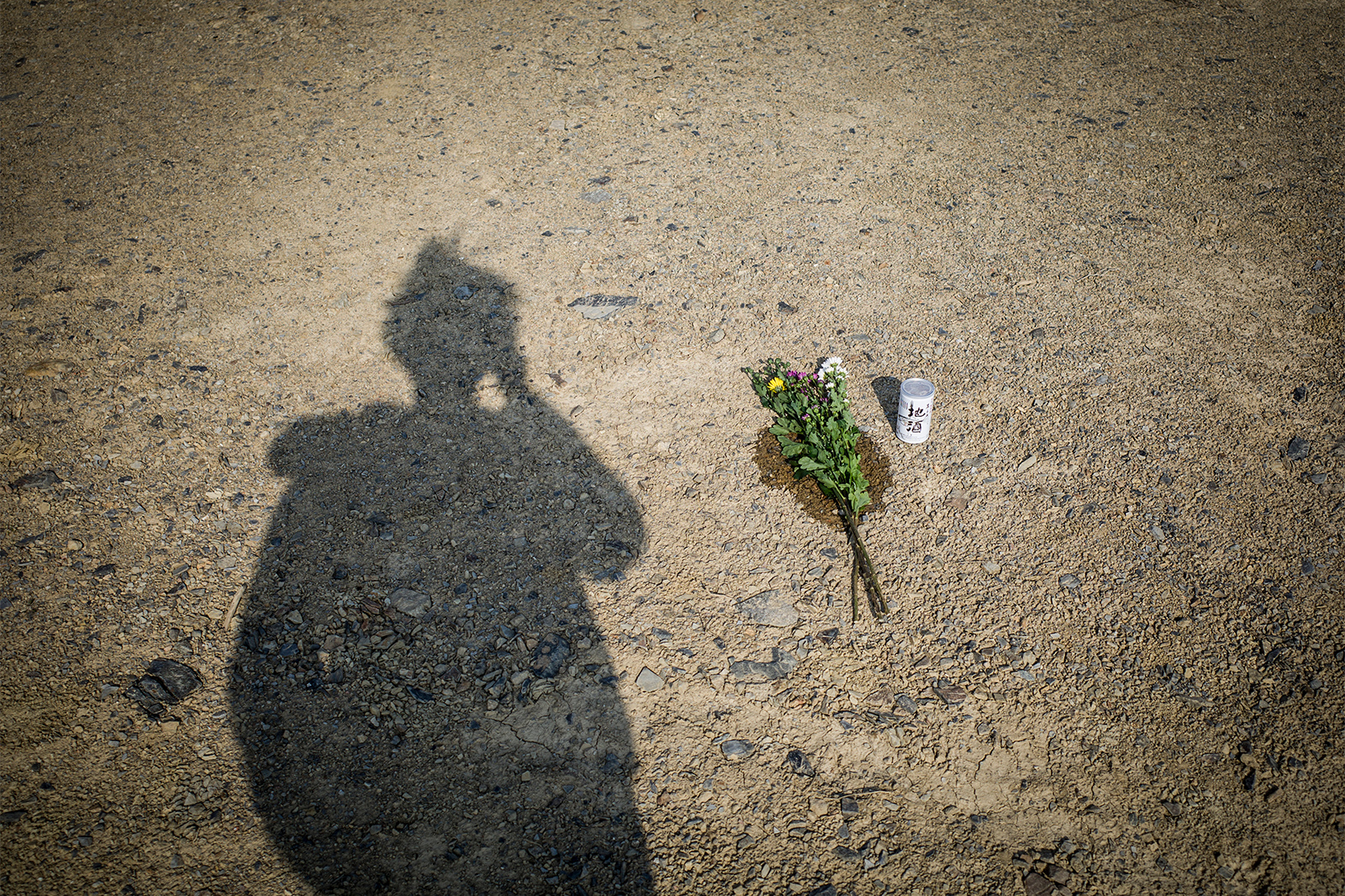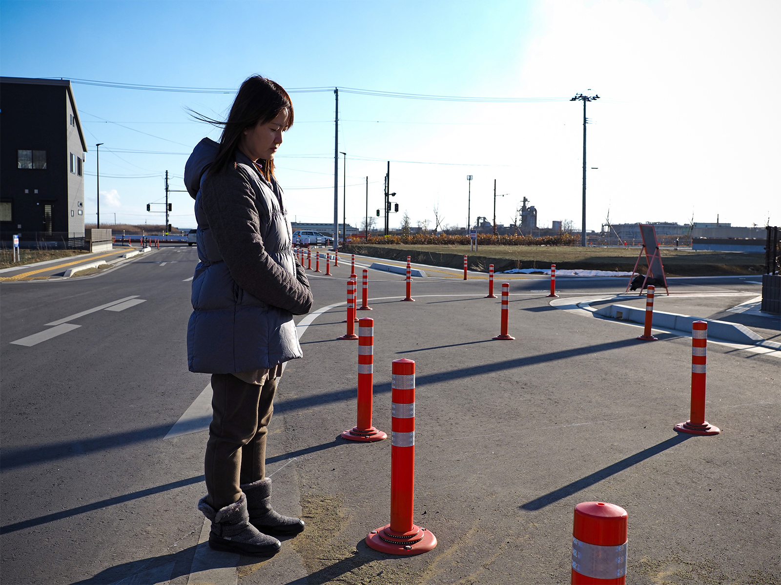仄かに雪の舞う、福島県大熊町を訪れました。除染廃棄物の詰まったフレコンバッグがあちこちに積まれ、人気のない家々は時が止まったかのように静寂に包まれています。いまだ遺骨の一部しか見つかっていない娘の汐凪(ゆうな)さんの慰霊碑に水をあげる木村紀夫さんは、帰還困難区域となっている自宅跡に、今も通い続けています。木村さんとの出会いは何年も前でしたが、こうして写真を撮らせて頂くことができたのは、この時が初めてでした。シャッターを切ることで、そこに漂う目に見えない何かを傷つけてしまいそうで、怖かったのです。その気持ちは今でも大切なものとして、忘れずにいたいと思っています。(佐藤慧)